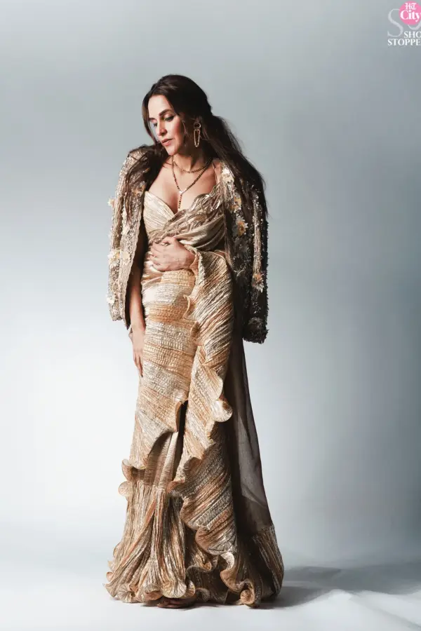 Ahana Raheja in a shades of gold textured metallic lehenga dupatta and a maroon velvet blouse