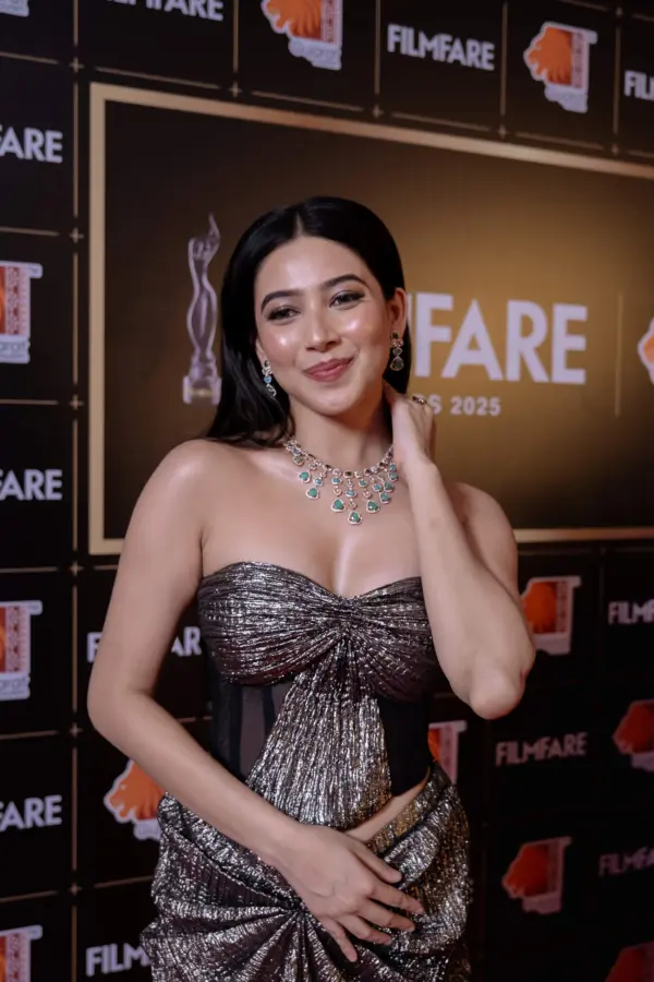 Dhvani Bhanushali in Black textured metallic lehenga with a textured metallic bustier set