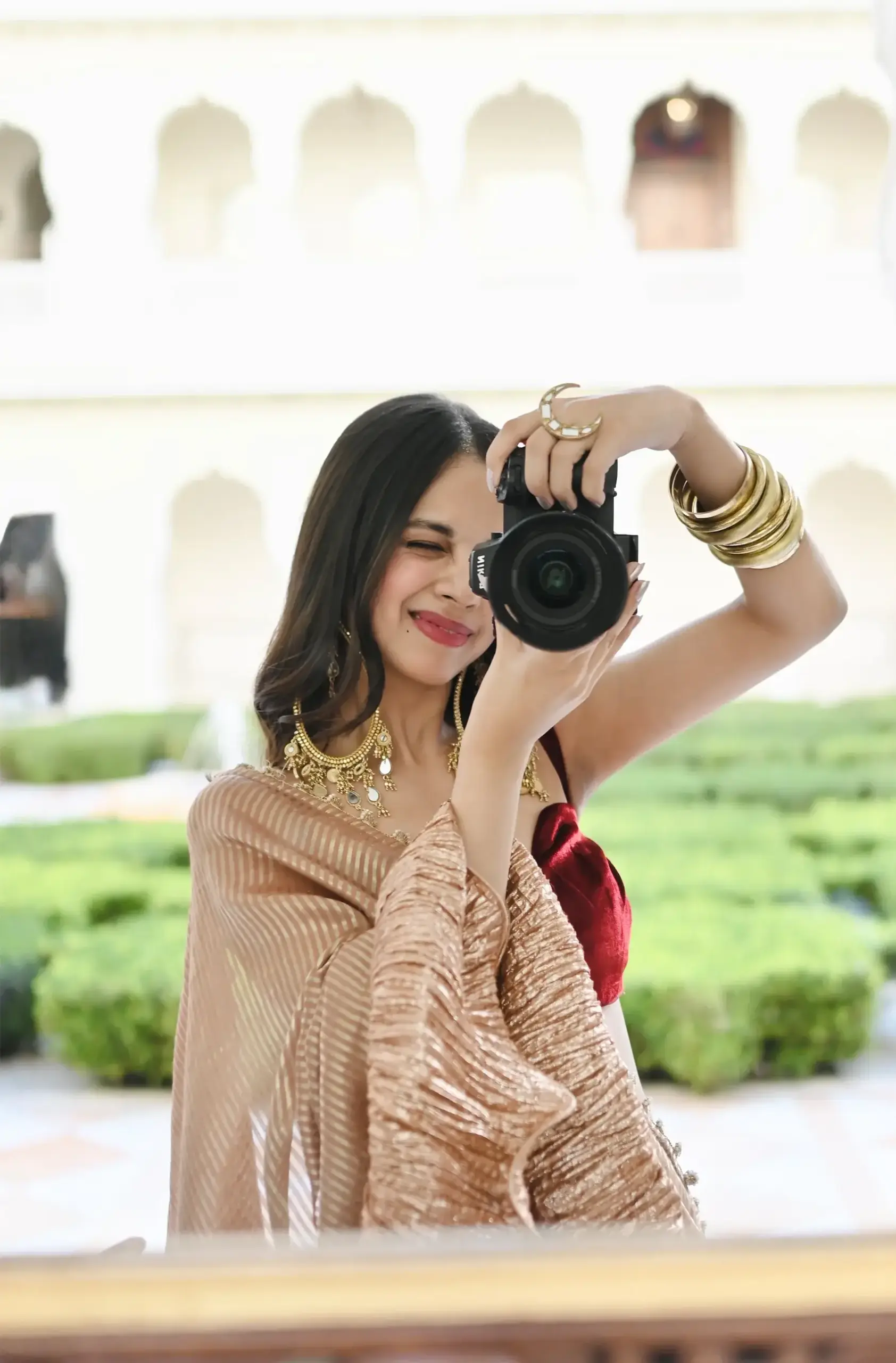 Neha Jalan in Baby pink and metallic rose lehenga set